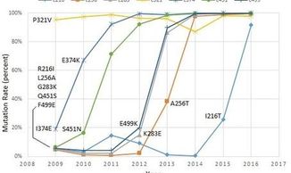 The virus has stayed in a metastable state since then, as seen in the graph above. The current vaccine, A/Michigan/ 45/2015 is still effective.